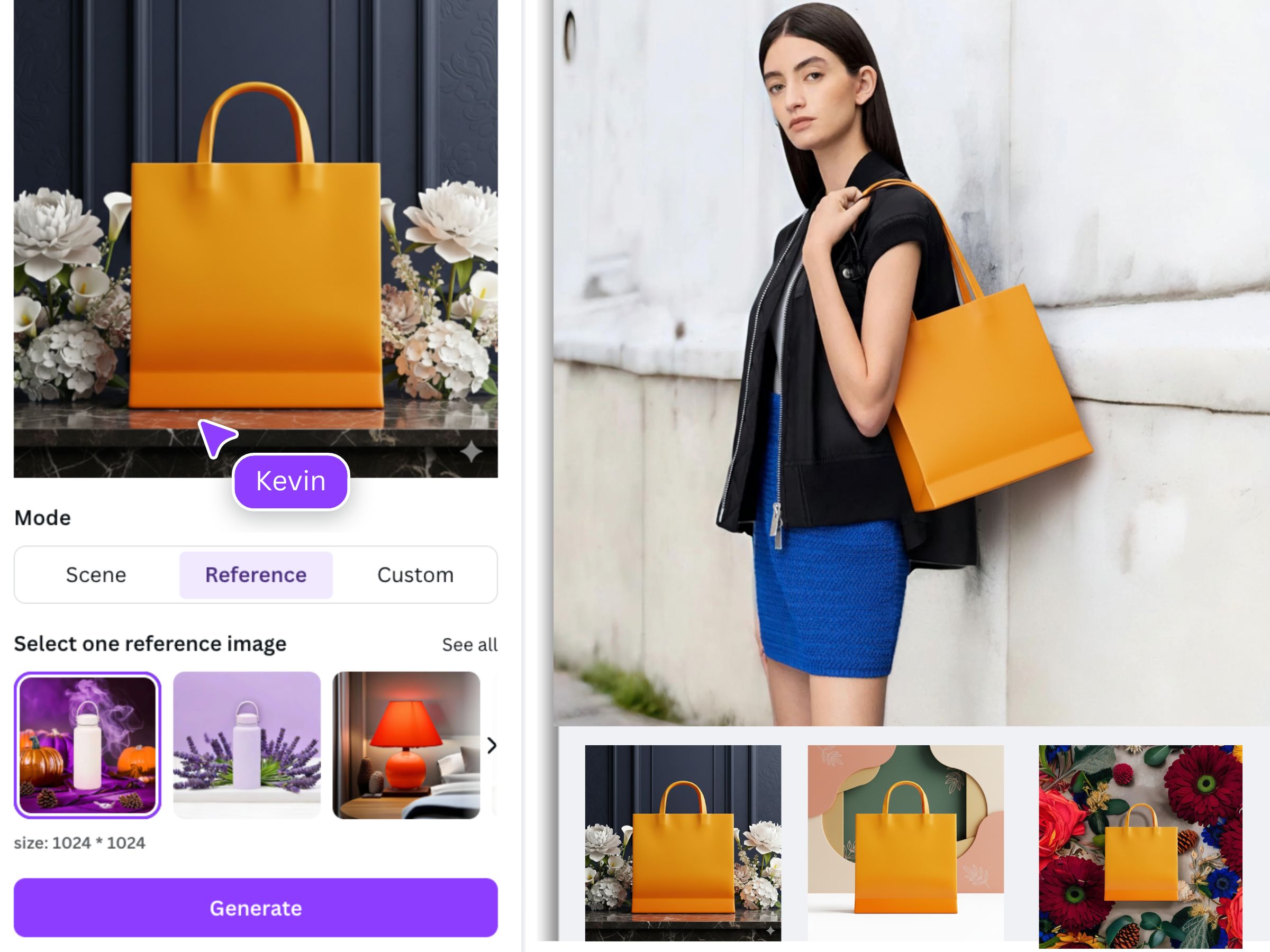 Upload any product image and generate professional showcases in gym, office, coffee shop, or outdoor settings. Access thousands of reference images to create compelling visual stories that sell.