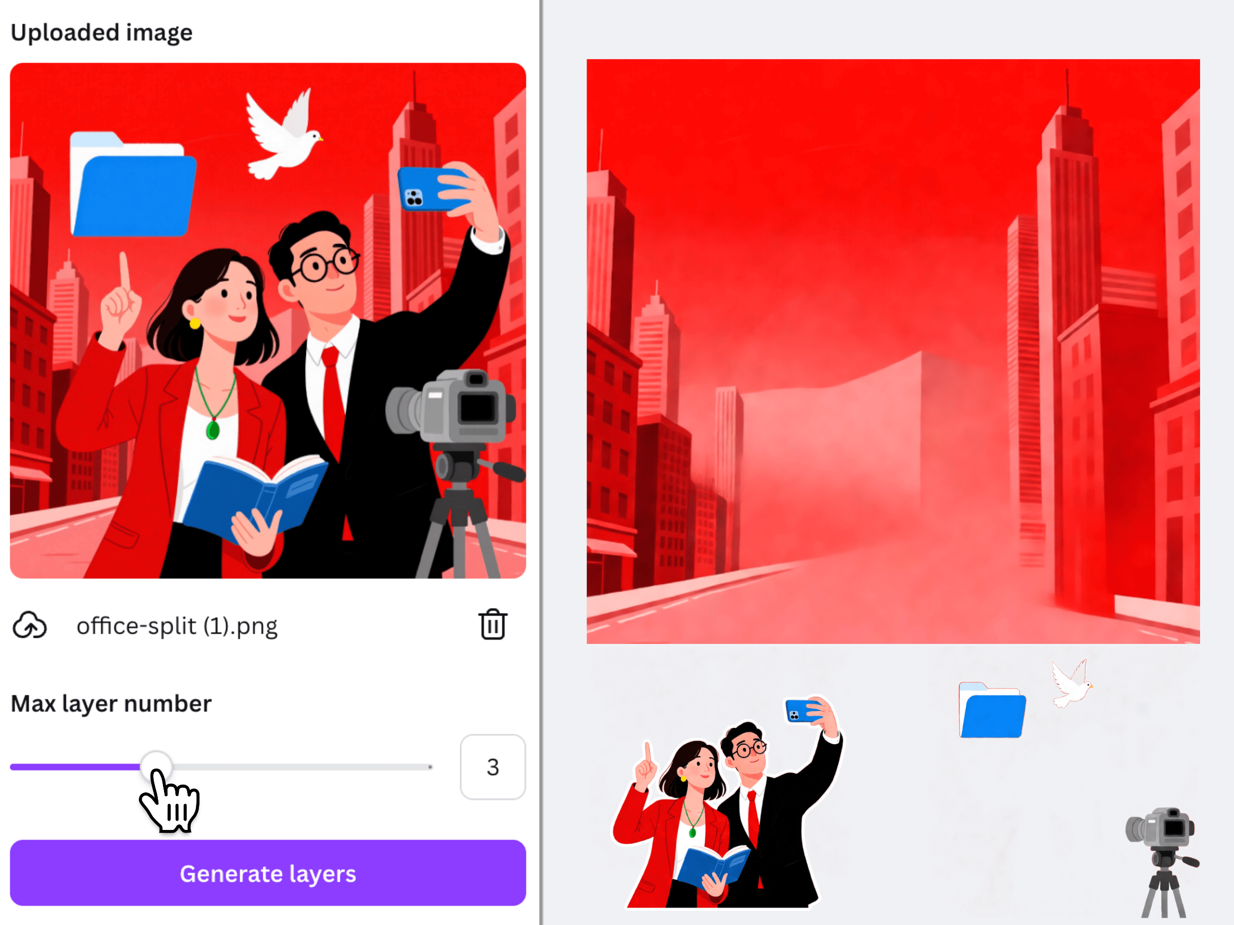 Split Image Layers Split images into layers with AI Support AI-powered image layer splitter that creates multiple editable layers from any image.